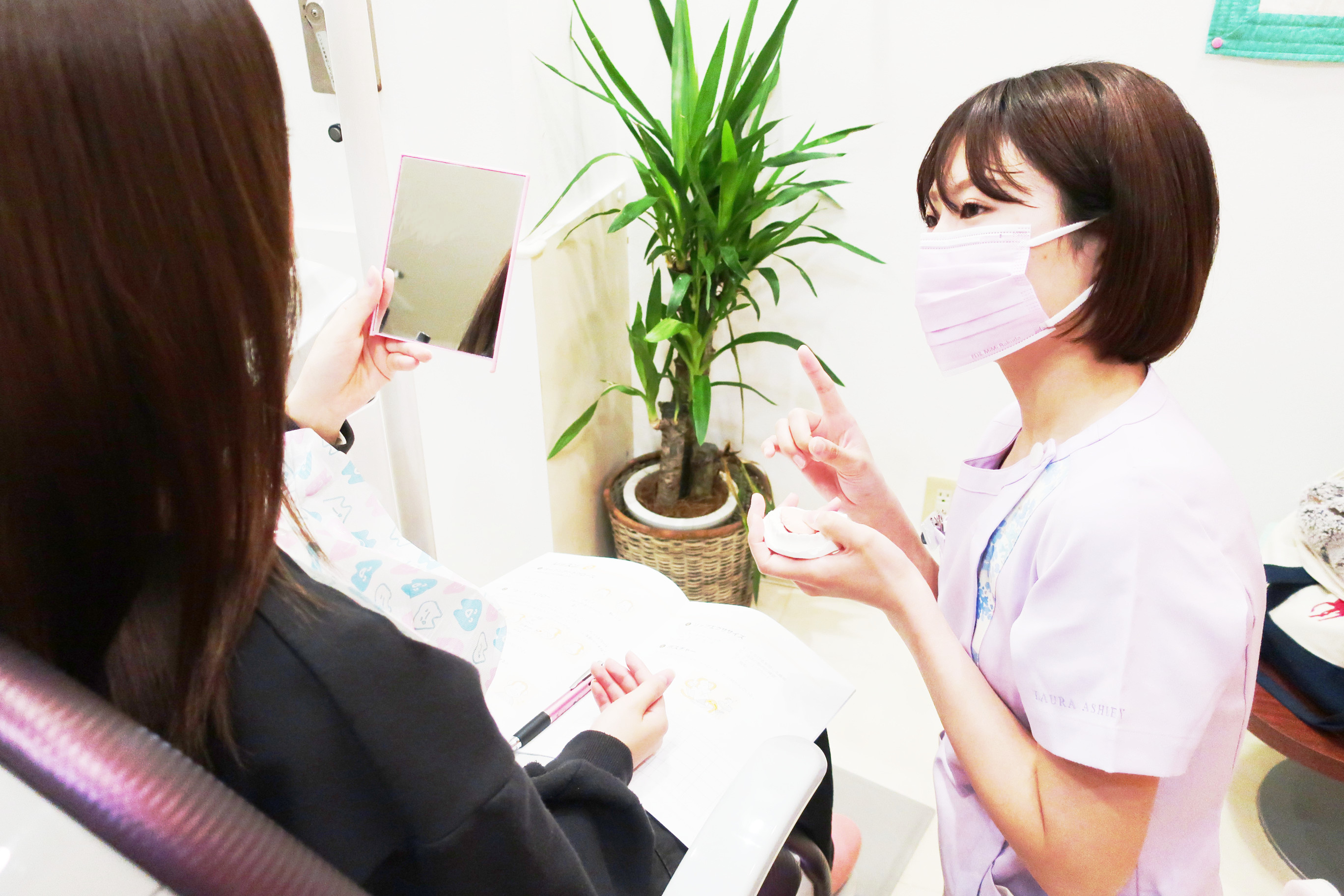 当医院には私を含めて歯科衛生士が6名在籍し、一般歯科とは大きく違う矯正歯科専門の知識や技術を身に着けて業務を行っています。そして全員が高いレベルの業務を行えるようお互いに良いコミュニケーションを取りながら日々努力しています。